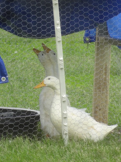 The ducklings inspect their roof.It’s bowing from the rain, but it will hold (we hope). 🐴