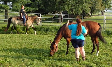 Here’s Mary and Mara giving Iris and Jewel a workout in the cool of the early morning: