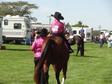 Mary and Stormy win a ribbon at the horse show!