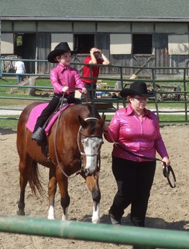 Mary and Stormy win a ribbon at the horse show!