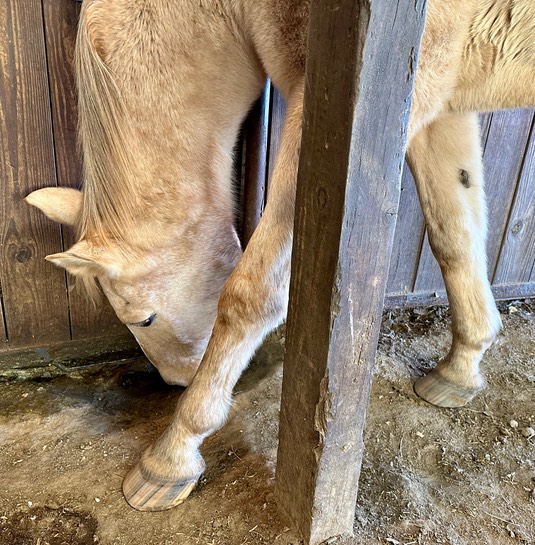 Let’s watch him jump, then dab-off his feet on the hay: