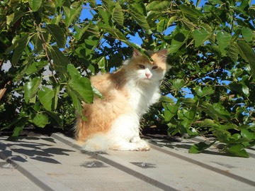 Kanna enjoys the shade from the tree that’s grown over our feed shed: