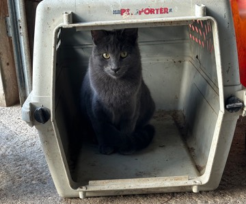 “Good morning! This cat carrier is a cozy place to wait for breakfast (I wouldn’t go near it, if it had a door)!”