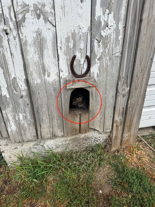 That’s one of Eva’s babies! The rain must have made her move them to the cat garage.