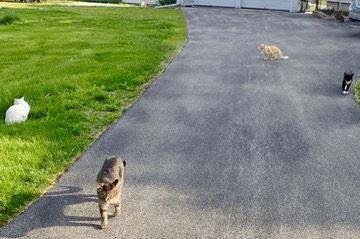 The cats are saying, “If you aren’t ready to feed us, you can’t park here.”