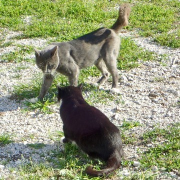 Ok, Schrödinger and Alfred, no fighting at breakfast. I know you’re grumpy because you’re hungry; but there’s no excuse for fighting (Don’t worry, a cat-cop broke it up):