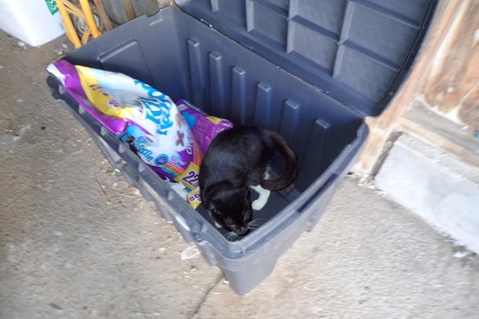 Here’s Schrödinger, trying to get a jump on breakfast: