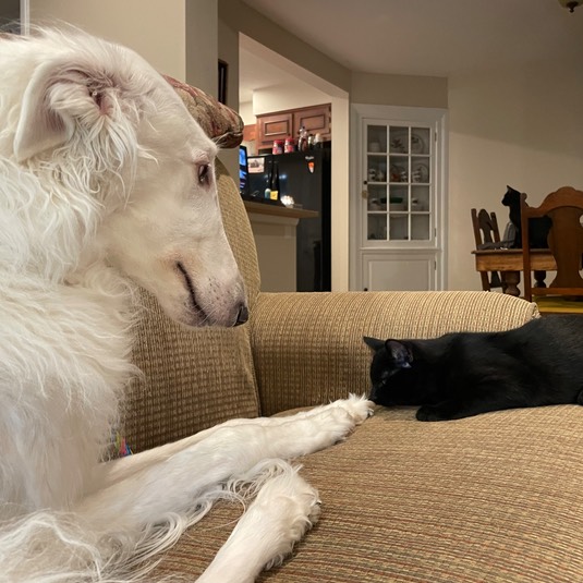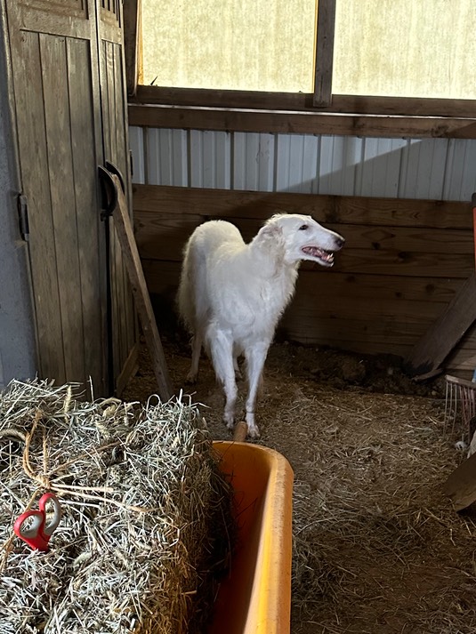 Sophie says, “Good morning! It’s great to be visiting the farm with Mary and Mara! Calla, Nixie, and Dukie are here, too!”