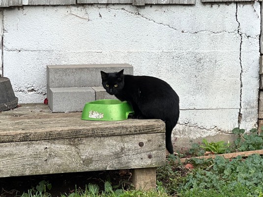 Eva is almost a full-grown kitty, and eating “big cat” food…
