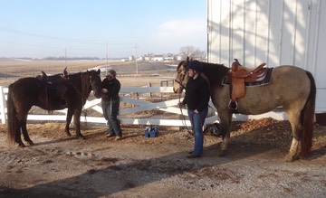 RC may be in retirement, but he still comes out to take a riding lesson with Mary if Stormy and Charlie are unavailable. On this day they were both getting their hooves trimmed.
