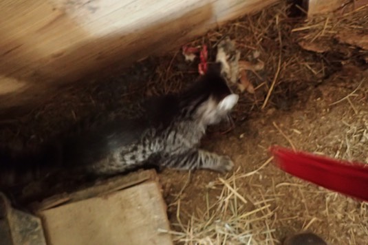 And Onslow has found a mutilated rabbit in our stable: