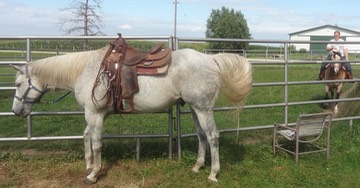 RC may be in retirement, but he still comes out to take a riding lesson with Mary if Stormy and Charlie are unavailable. On this day they were both getting their hooves trimmed.