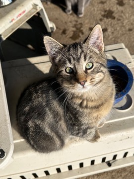 “Good morning! This bright sun has turned my kitten pupils into teeny slits.”