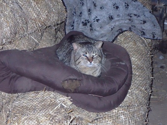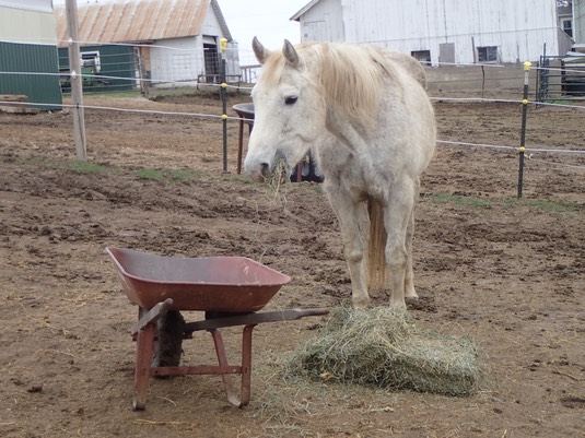 Oh, and how did this happen? Misty is out at the hay before me: