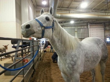 Mary leads Stormy to the stable at Blackhawk College for his first day at school!
