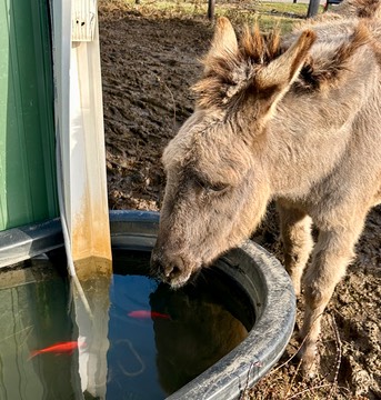 Good morning! It’s sunny and temperate, after a day of rain. All that rain from the roof has left the water fresh and the goldfish visible!