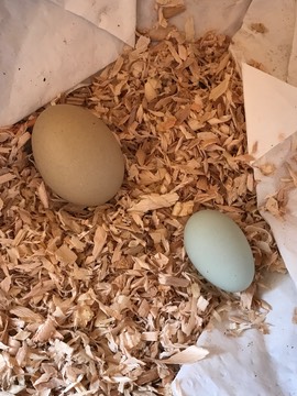 As you know, the Easter-egger “babies” have only been laying eggs since mid-July, so their eggs have been small: