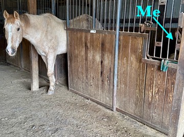 Good morning! It’s a chilly but beautiful day. There’s a lot to show you, but let’s start with last night. After dinner I “nosed” into RC’s stall to clean up his leftovers. I allegedly didn’t leave enough space for RC to get out. He’s quite smart enough to know that all he has to do is back up, but he wanted be dramatic and get the cat-cops’ attention, so I’d get in trouble:
