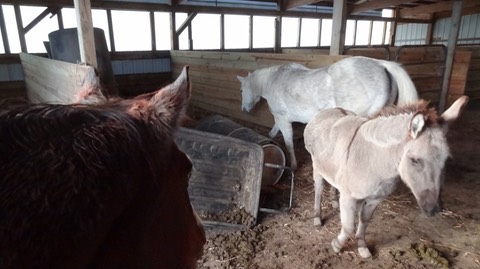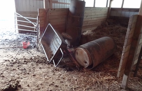 Yep, looks like somebody knocked over a manure cart and a spool of stall liner: