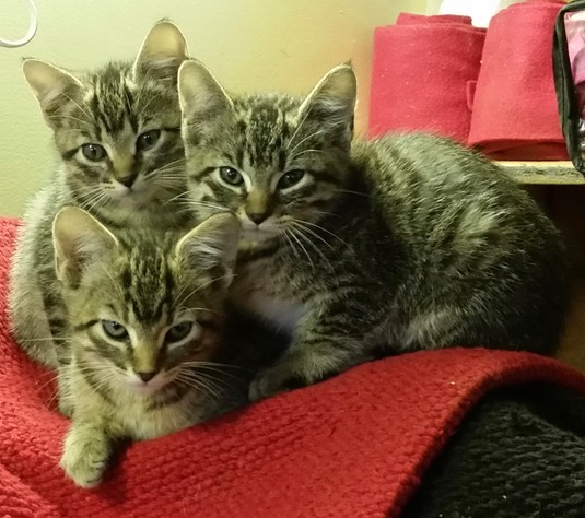 Bill found her, October 2016, with her brother and sister, abandoned by the Hennepin while he was fishing. Here they were as kittens: