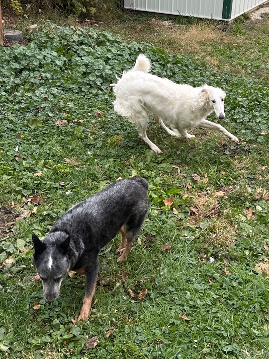 Nixie and Anya have the zoomies in the backyard: