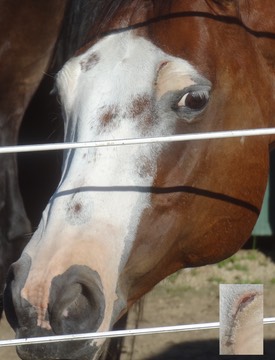 We keep medicine on it, and he gets a fly-mask too, that helps protect the wound.