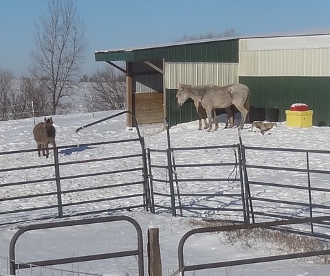 Henry, by the way, is feeling still better. Here he is standing with RC by the water tank this morning: