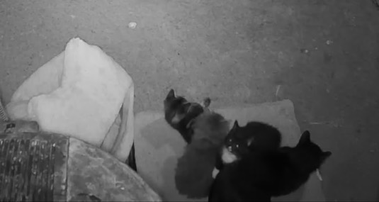 The cat-cops need to buy a bigger heated pet bed. In a matter of weeks, everyone will want to sleep on it, not just the babies: