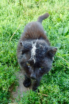 That’s a nasty cobweb on your head, Evil Cat. The cat-cops would be happy to take it off, if you would only let them: