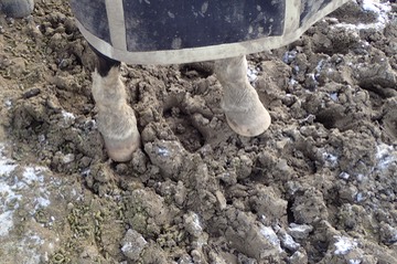 Why are we looking at Iris’s hooves? Well, it’s not that it’s farrier day (but our friend Travis always does a nice job on her feet), it’s that it’s very cold, so the mud has frozen, so we’re all struggling to walk on some very rough terrain: