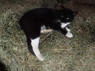 Schroeder heard that we found baby mice in the hay barn yesterday, so he’s been waiting for them to come back:He will have a long wait. 😿