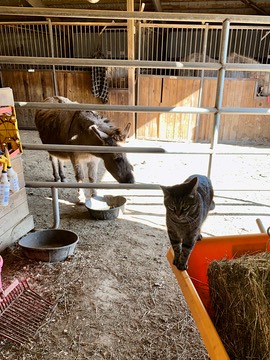 Good morning! What are you looking at, Onslow? If you want to make yourself useful, keep the hens from laying eggs on my hay!