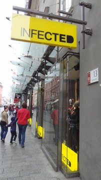 One of our many fledgling swallows wows us with its impression of a gargoyle!