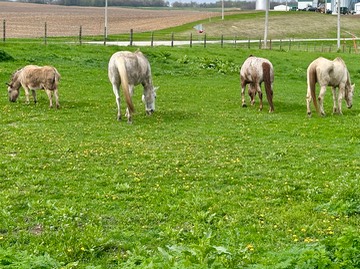 Good morning! For the first time this year, we’re eating in the front pasture. “Management” made us wait until the grass and dandelions had grown green and sweet: