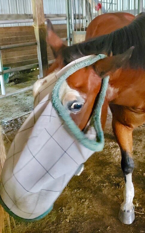 No matter how carefully our masks are put on, Chezzie can be counted on to make an “adjustment:”