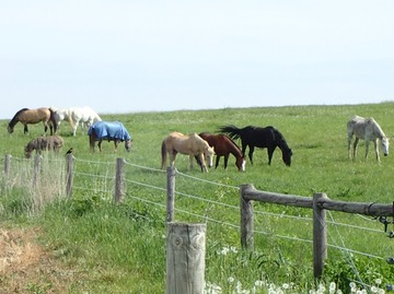 We’re out in the field again today:There’s more grass in the far pasture than even we can eat! 🐎