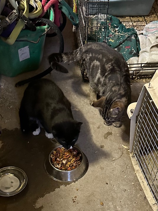 Tux and Marbles spent last night in the tack room to fully wake up after their operations: