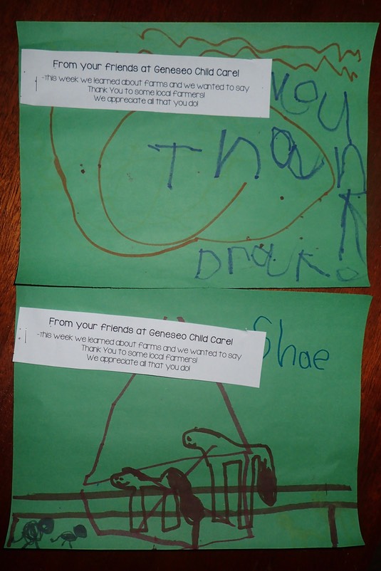 But the highlight of the morning was a surprise visit from René and Tyler, our friends from Geneseo Child Care across the street! They brought their children—Shae, Harper, Reed and Ryder—who fed the ducks mealworms, and fed carrots to Jewel and Rose, and petted Pumpkin! 😺