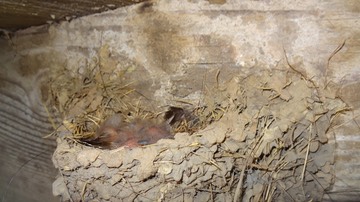 One of our many fledgling swallows wows us with its impression of a gargoyle!