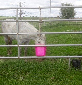 Mary was riding Stormy while the other horses were getting fed. So he had dinner in the riding circle.