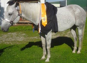 Mary and Stormy win a ribbon at the horse show!