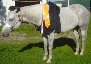 Mary and Stormy win a ribbon at the horse show!