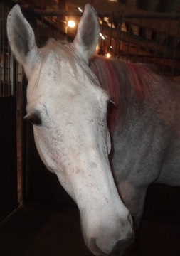 Stormy had to come home for a while, since Mary can’t take care of him, having a broken finger. It looks like he picked up a big cut on the inside of his leg—but it’s leftover dye from when he played the Queen of Heart’s (Mary's) horse on Halloween!