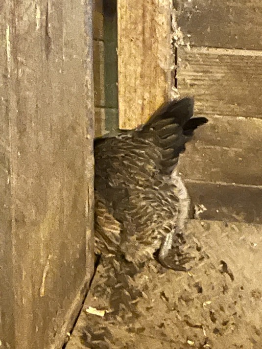 Betty, Onslow and Schroeder spent the night in the hay barn. The coop was supposed to be a cozy place for laying eggs, but only Onslow seems to like it:
