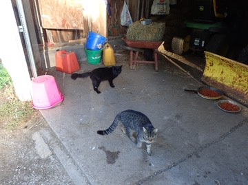 Nimbus comes into the garage for breakfast:Everyday she gets less skittish. 😺
