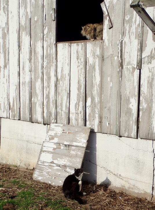 The wind was terrible yesterday afternoon. Here’s Evil Cat, on the door that blew off the hay barn: