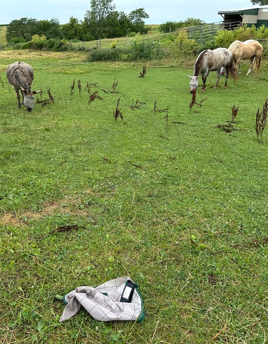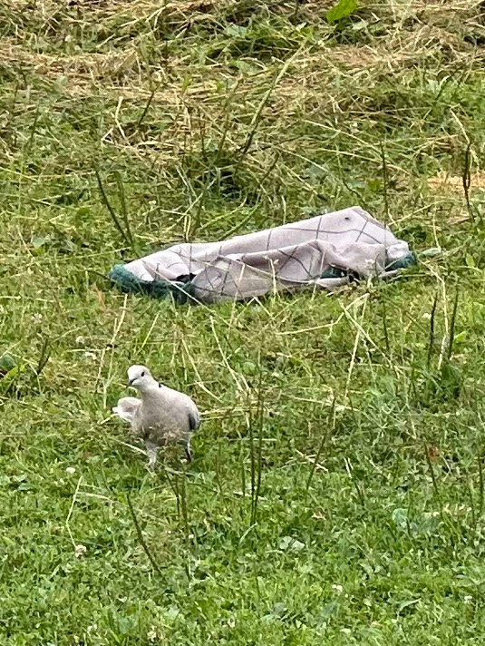 One of our Eurasian Collared Doves brought this lost mask to our attention, with its crow-like call: