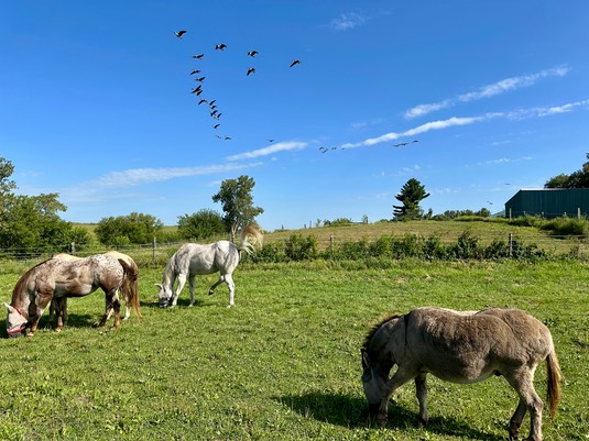 Good morning! “Management” was thinking about closing the front pasture, but I’m showing them that there’s still plenty of grass to eat here, farther down the hill: