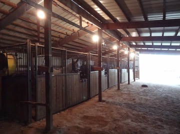 Stormy bravely goes into his new stall.