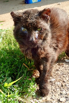 And I can’t wait around to be fly-sprayed. I’m going to “help” Jewel clean up her breakfast: